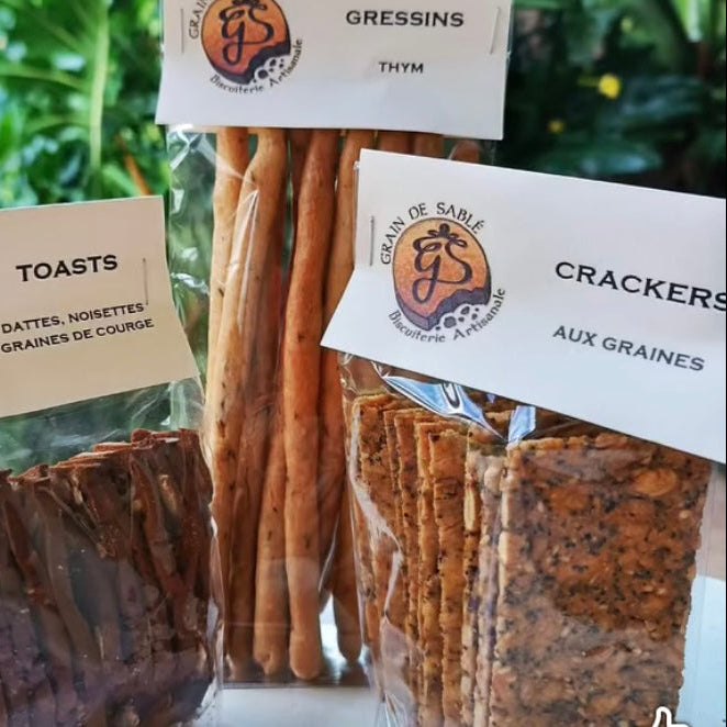 - Sablés apéritifs 50g / 120g (Curcuma/cacahuètes ou Vindaye graines de courge ouMassalé piment/graines de tournesol ou noix de cajou/piment)
